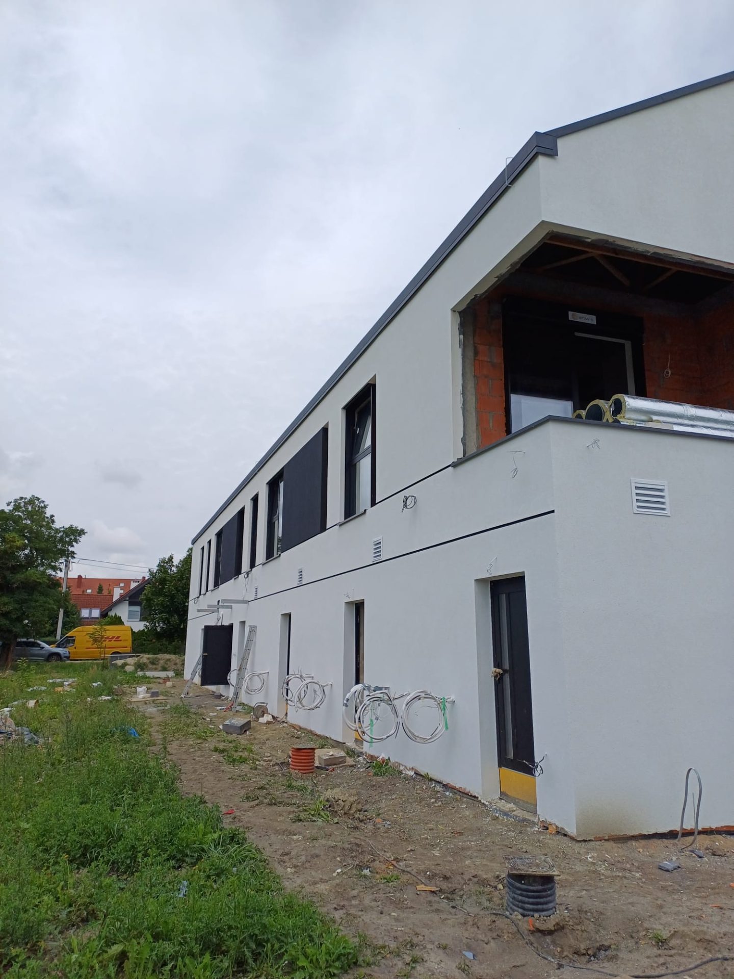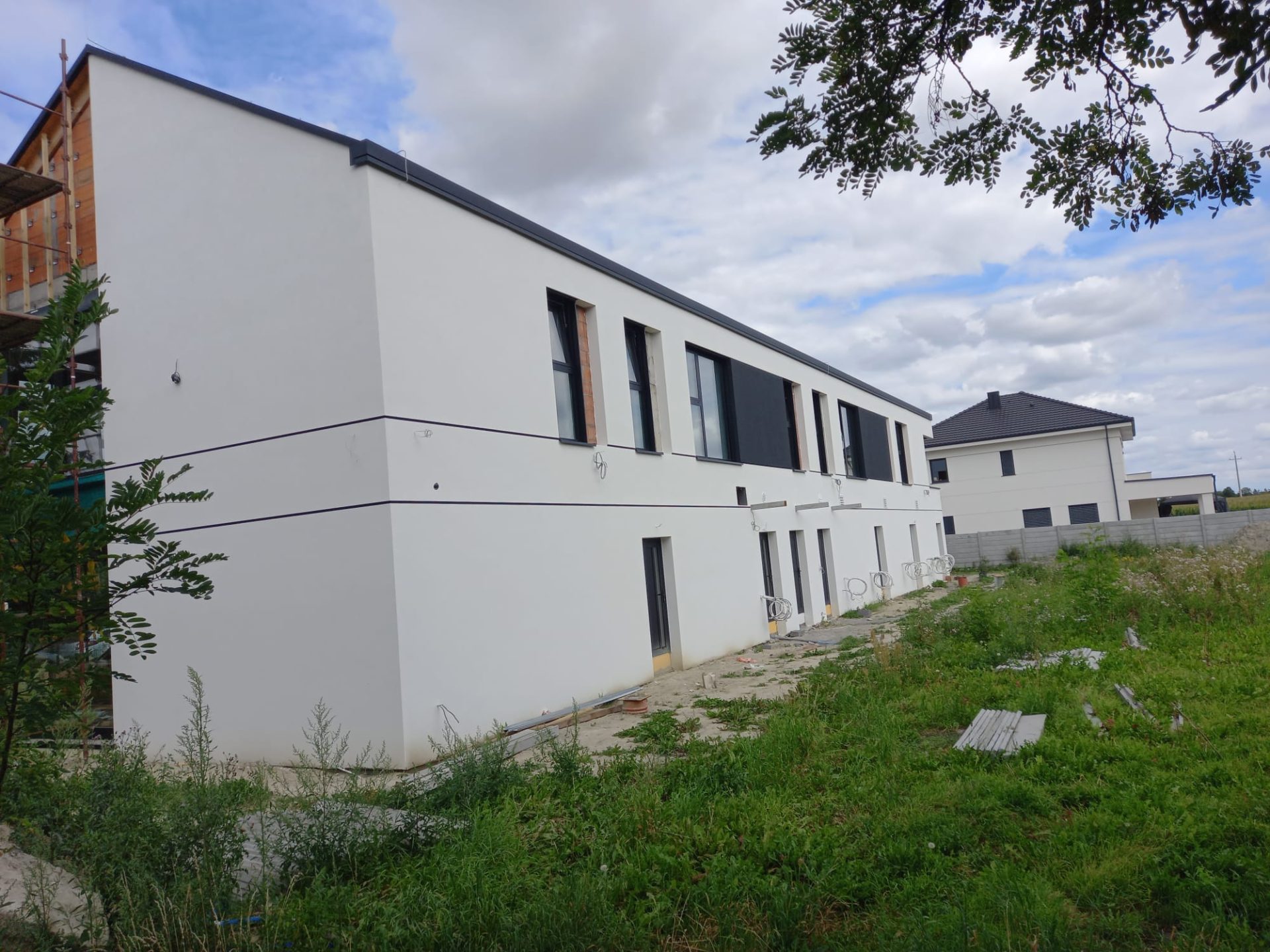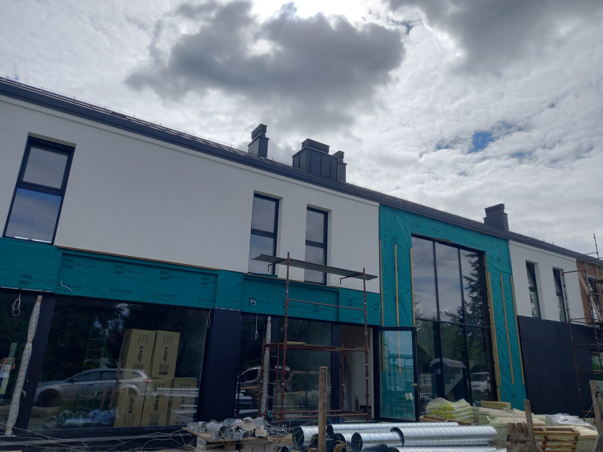 Dom mieszkalny z lokalem użytkowym i dachem spadzistym w Tarnowie Podgórnym, w trakcie budowy przez Bartom Development.